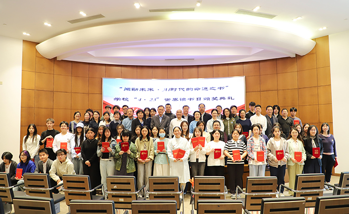 颁奖环节,主持人依次宣读了各奖项获奖名单,与会领导分别为“借阅之星”(教师组、学生组)、“书香校园・经典诵读”打卡获奖者、“捐书之星”、“哪吒同行・阅动三界”阅读积分挑战赛获奖者、“穿梭名著长廊・感悟多彩世界”短视频讲座打卡获奖者以及第十届“知网杯”上海高校信息资源发现大赛获奖者颁发荣誉证书与奖品。