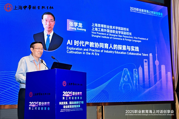 5月18日,由上海中华职业教育社主办的“2025职业教育海上对话创享会”在上海召开。本次对话会以“科技发展、国家战略牵引下的职业教育高质量发展”为主题,通过多元形式探讨职业教育改革路径。学校董事长钱莹、副校长张学龙应邀参会,与各界同仁汇聚一堂,探寻职教发展。张学龙副校长代表上海工商外国语职业学院和上海思博职业技术学院在大会的主题沙龙作演讲,深度分享了两校在AI时代产教协同育人的实践探索和基本成效。