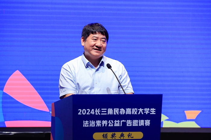 颁奖典礼上,上海市民办教育综合党委副书记江鸿波在讲话中表示,恰逢端午时节,屈原作为中华传统文化中具有法治精神象征意义的历史人物,是青年一代在新时代坚定理想信念、传播法治理念的精神源泉。他指出,赛事不仅推动了高校课程思政育人与社会法治传播的深度融合,也在潜移默化中让法治理念植入人心。他鼓励青年学生,要严格守法,尊重社会公序良俗,坚守向上向善、公平正义的理念;要加强学法,做好“知法懂法”,践行“守法用法”;要积极参与普法宣传活动,为学习贯彻习近平法治思想、习近平文化思想,推进国家法治进步贡献青春力量。