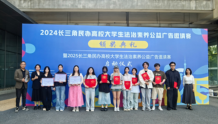 当创意艺术邂逅严肃法典,一场别开生面的法治文化盛宴拉开帷幕。5月30日,“2024长三角民办高校大学生法治素养公益广告邀请赛颁奖典礼暨2025长三角民办高校大学生法治素养公益广告邀请赛启动仪式”在上海视觉艺术学院举行,我校师生团队在此次赛事中斩获多项大奖,为学校赢得了荣誉。