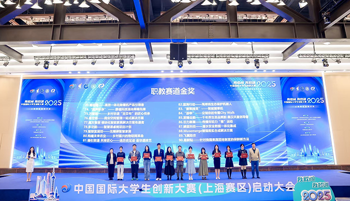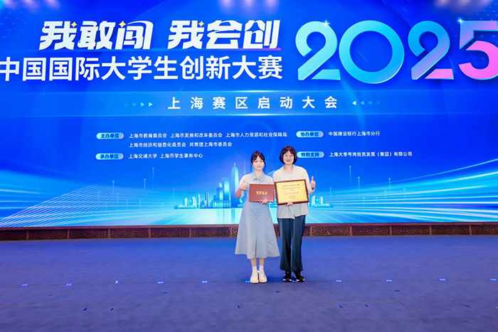 在5月28日举行的2025年中国国际大学生创新大赛上海赛区启动大会上,我校创新创业工作获得重要表彰。金融2301班郑诗琦同学作为“至臻云胆”项目负责人,代表团队接受上届大赛上海赛区金奖表彰;创新创业学院院长胡凤麟代表学校领取“优秀组织奖”荣誉证书。