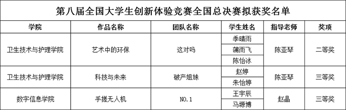 6月4日,第八届全国大学生创新体验竞赛全国总决赛公布获奖名单,我校参赛团队历经激烈比拼,最终在全国总决赛中荣获1项二等奖、2项三等奖的佳绩!