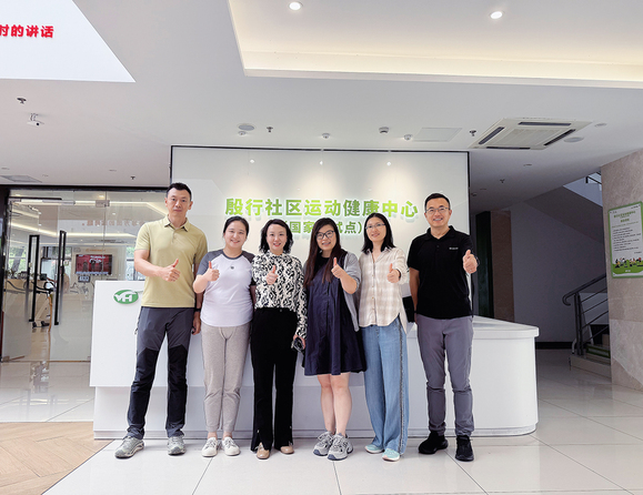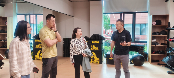 随后,校领导一行还实地走访“五氧健身”场馆及公司与社区共建的“殷行社区运动健康中心(国家级试点)”。该运动健康中心位于上海市杨浦区,作为全国首批试点项目,由殷行、江浦路、控江路、长白新村、五角场和长海路街道等六个街道中心组成,采用“双中心”体医融合服务模式,通过社区卫生服务中心与运动健康中心的协同运作,实现医学体检、风险评估、运动干预、效果复查的闭环管理。2024年重点推进的“三高”共管项目,覆盖全区12个街道,建立超1.5万份个性化运动健康档案,不仅使运动健康服务走进大众生活,更迈出了运动干预慢性病的第一步。副校长张辉表示,期待通过校企合作共建、资源互补,将学校专业建设与企业市场经验相结合,共同服务“健康中国”“体育强国”的建设。