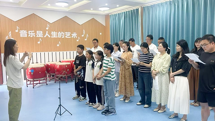 支教期间,王艾佳老师牵头组建了学生和教师两支合唱团。从基础音准训练到多声部合唱配合,她带领师生从零起步,为学生合唱团设计每周两次的系统排练,让孩子们在音乐技能提升中锤炼纪律性与团队意识;教师合唱团的成立则为乡村教育工作者开辟了艺术栖息地,让他们在教学之余感受音乐的治愈力量。