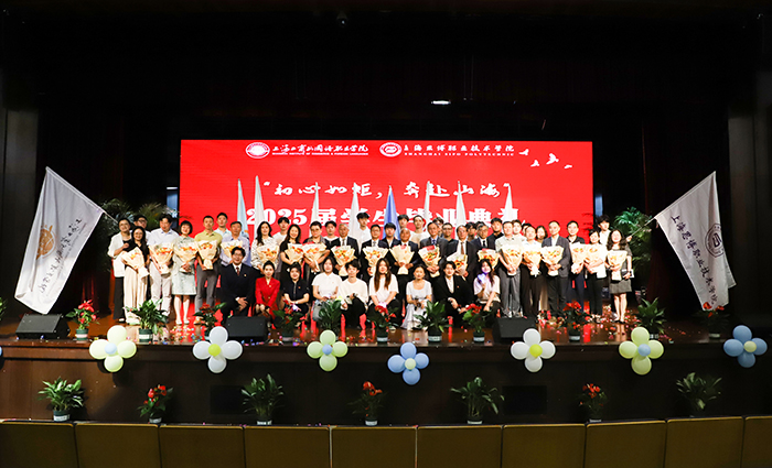 万峰书记宣读《两校2025届上海市和校级优秀毕业生表彰决定》,外国语言文化学院方林等140人获评“上海市优秀毕业生”,商学院吴雨星等275人获评“校级优秀毕业生”称号。