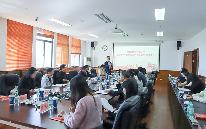 为深入学习贯彻习近平新时代中国特色社会主义思想、党的二十大和党的二十届四中全会精神,落实《关于深化新时代学校思想政治理论课改革创新的若干意见》要求,10月24日下午,思政课有效教学研讨暨上海师范大学马克思主义学院与我校马克思主义学院共同备课会,在思博综合楼505会议室举办。本次会议由两校马院联合举办、我校马院承办。上师大马院4位专家、上海工商外国语职业学院党委书记万峰、马院院长何玉海、常务副院长沈李、副院长陈静、支部书记倪丽娜及马院20余名教师参会,围绕“提升思政课教学实效”核心议题展开深度交流,为思政课改革创新凝聚共识、贡献方案。