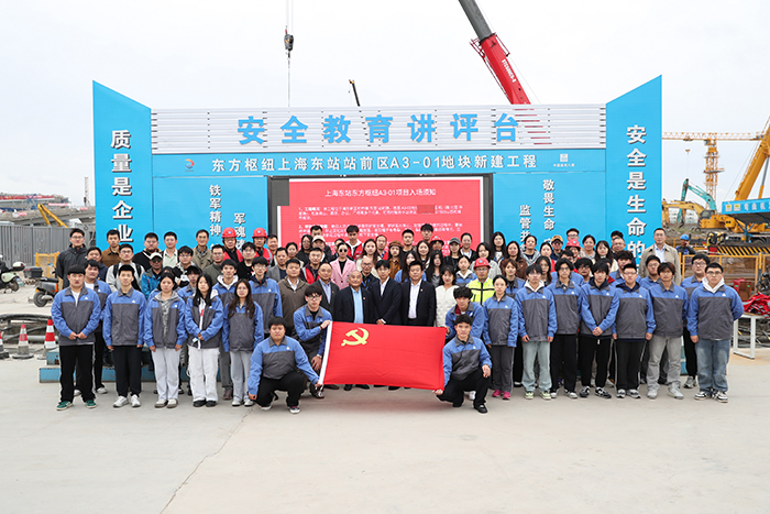 为深入学习贯彻《习近平谈治国理政》第五卷精神及党的二十届四中全会部署要求,推进党建与产教融合深度融合,11月4日,学校工学院党支部与中建八局东方枢纽上海东站项目党支部联合开展“党建联建聚合力 产教融合促发展”主题学习活动。校长黄正带领工学院全体教师及学生入党积极分子代表100余人赴项目现场,实地感受国家重大工程建设成果,共绘校企协同发展新蓝图。