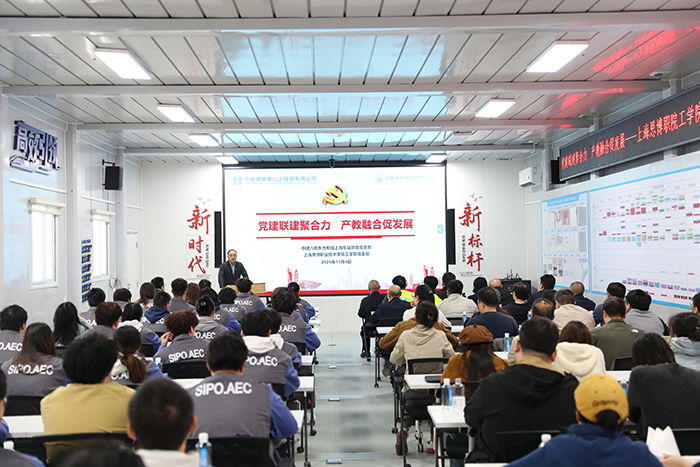 为深入学习贯彻《习近平谈治国理政》第五卷精神及党的二十届四中全会部署要求,推进党建与产教融合深度融合,11月4日,学校工学院党支部与中建八局东方枢纽上海东站项目党支部联合开展“党建联建聚合力产教融合促发展”主题学习活动。校长黄正带领工学院全体教师及学生入党积极分子代表100余人赴项目现场,实地感受国家重大工程建设成果,共绘校企协同发展新蓝图。