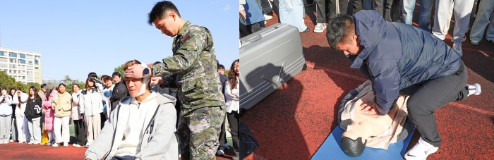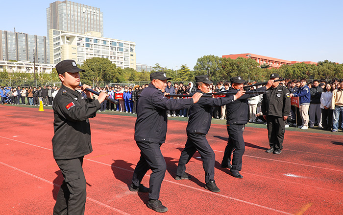 随后,学校保安队伍表演了“智斗歹徒”反恐演练和龙带连接两个项目,精彩展示赢得阵阵掌声,也为后续比赛拉开序幕。同学们精神饱满,迅速投入到各个演练项目中。