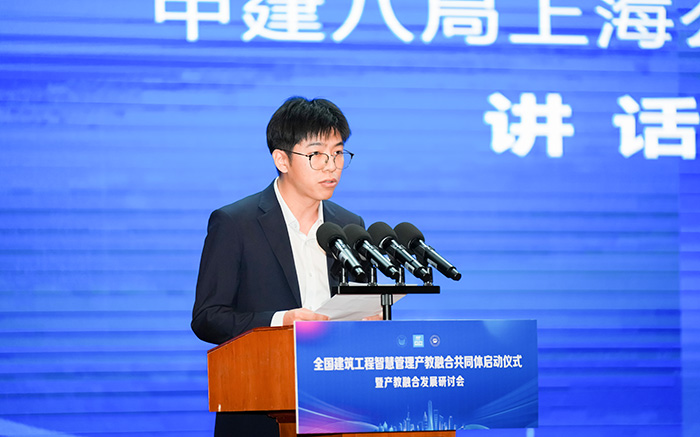 启动仪式上,上海思博职业技术学院黄正校长首先致辞。他表示,学校深耕职业教育二十余年,智能建造专业群已建成上海市高水平高职专业群,此次牵头组建共同体是学校落实产教融合核心战略的关键举措。学校将与各成员单位共享优质资源、共研培养标准、共建实训基地,全力打造“课堂与现场对接、教学与生产同步、育人与用人一体”的办学新格局。