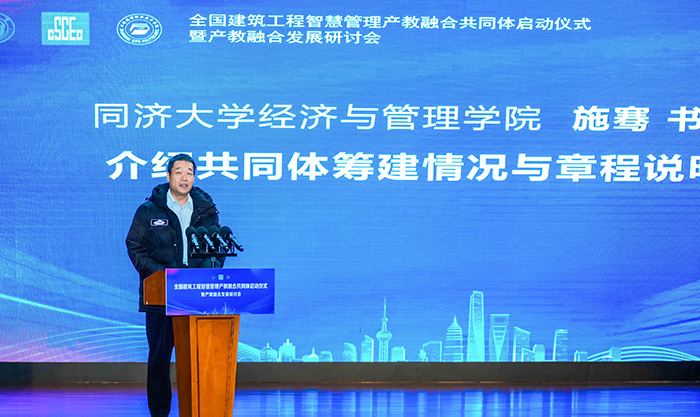 随后,同济大学经济与管理学院施骞书记详细介绍了共同体筹建情况与组织章程。据悉,共同体以“优势互补、资源共享、协同育人、共谋发展”为理念,设立理事会、常务理事会、专业委员会及秘书处,秘书处常设在上海思博职业技术学院,将统筹推进人才培养、资源建设、产业服务、文化传承、技能竞赛等核心任务,构建权责明晰、运转高效的协同治理体系。