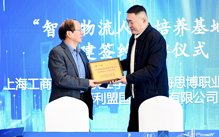 在研讨会签约环节,多项重磅合作落地,标志着浦东地区在物流领域产教协同发展迈出坚实步伐。其中,上海工商外国语职业学院、上海思博职业技术学院与上海利盟国际物流有限公司共同签署“智慧物流人才培养基地”共建协议,并获得授牌。该基地旨在整合校企优势资源,共同探索现代学徒制、订单式培养等多元化育人模式,为智慧物流领域输送兼具实践能力和创新精神的高素质技术技能人才。姚大伟副校长与利盟物流创始人、CEO刘洪峰先生现场签约,上海市邮政管理局人事处处长卢辰颖、上海市快递行业协会会长周德刚现场见证。
