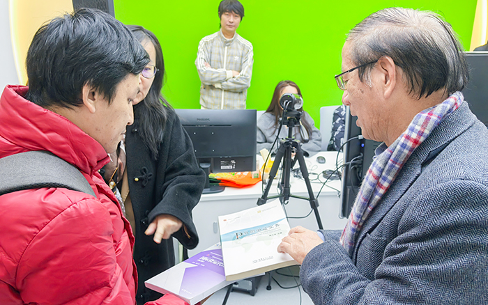 代表团首先参观了我校商学院各专业实训室,姚大伟副校长全程陪同导览。在成果展示区,代表团对商学院近年来在学科建设、产教融合、技能竞赛等方面取得的丰硕成果与荣誉奖项表示赞叹。交流中,一段温馨的“教材之缘”拉近了双方的距离。李文松主任提及,其主讲的商务汉语课程所用教材,正是姚大伟教授主编的规划教材《国际商务单证理论与实务》,姚大伟副校长随即赠予“十四五”规划新版教材,纪念两校教育教学交流的深厚渊源。