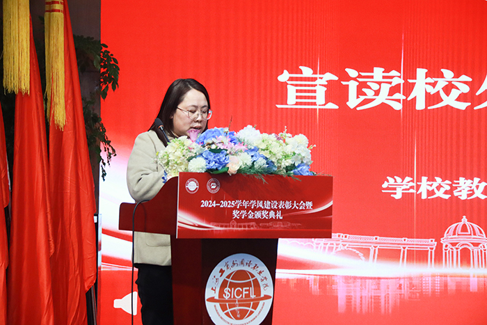 教务处常务副处长张倩宣读校外竞赛奖获奖学生表彰决定