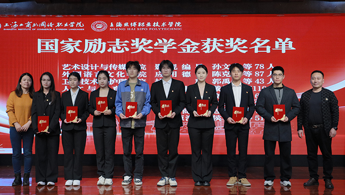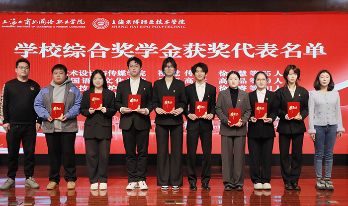 上海工商外国语职业学院姚秀平校长首先宣读了国家奖学金、上海市奖学金及励志奖学金的表彰决定,并为获奖学生颁发荣誉证书与奖学金。相关领导为获奖者颁奖。