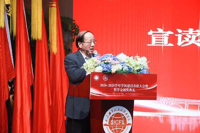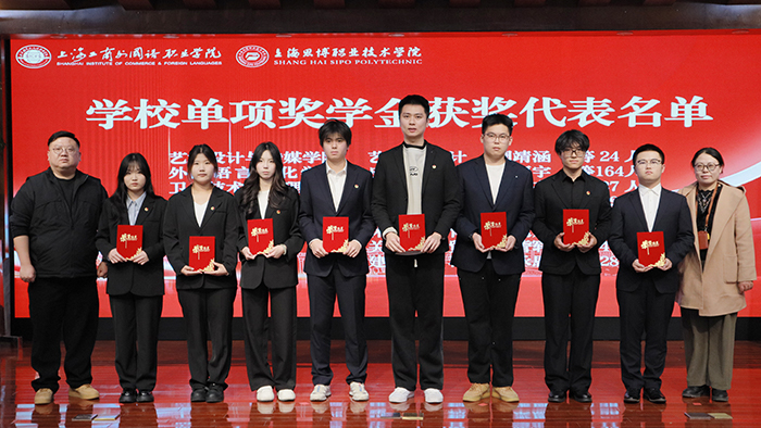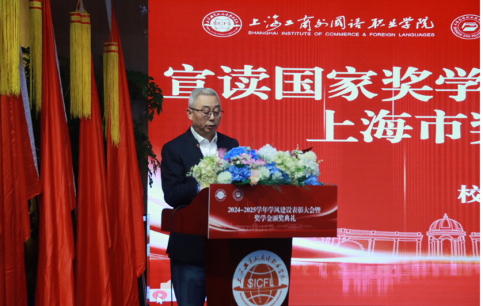 12月18日,上海工商外国语职业学院、上海思博职业技术学院2024-2025学年学风建设表彰大会暨奖学金颁奖典礼在工商外报告厅举行。两校师生代表齐聚一堂,共同见证荣耀时刻,激励学子逐光前行。