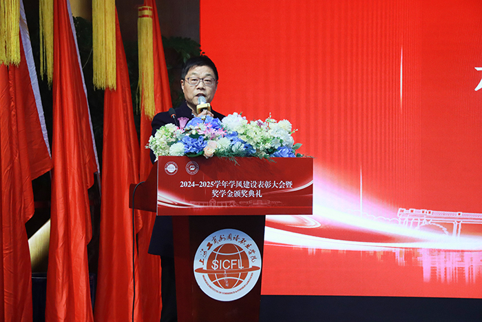 党委书记万峰为表彰大会寄语。他表示,学风是治学之本、成才之基。希望获奖同学以荣誉为起点,坚守初心、勇攀高峰;全体同学以榜样为镜,勤学善思、笃行实干。学校将持续筑牢学风建设根基,为大家成长成才保驾护航。万书记的寄语为同学们指明前进方向,激励大家在学业道路上不断奋进。