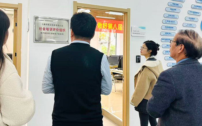 为加速推进我校跨境电子商务师社会评价组织试运行工作,推动评价中心正式展开评价工作的建设进程,保障社会评价事务有序开展,12月22日上午,杭州沃土教育科技有限公司上海公司总经理朱奕炜、副总经理秦元媛、教务长林姣一行来访我校。姚大伟副校长带领我校社会评价组织的团队成员,在数字商贸学院会议室与来访的沃土公司管理与技术人员进行了业务交流及技术沟通,有效地推动了社会评价组织工作的进一步完善。