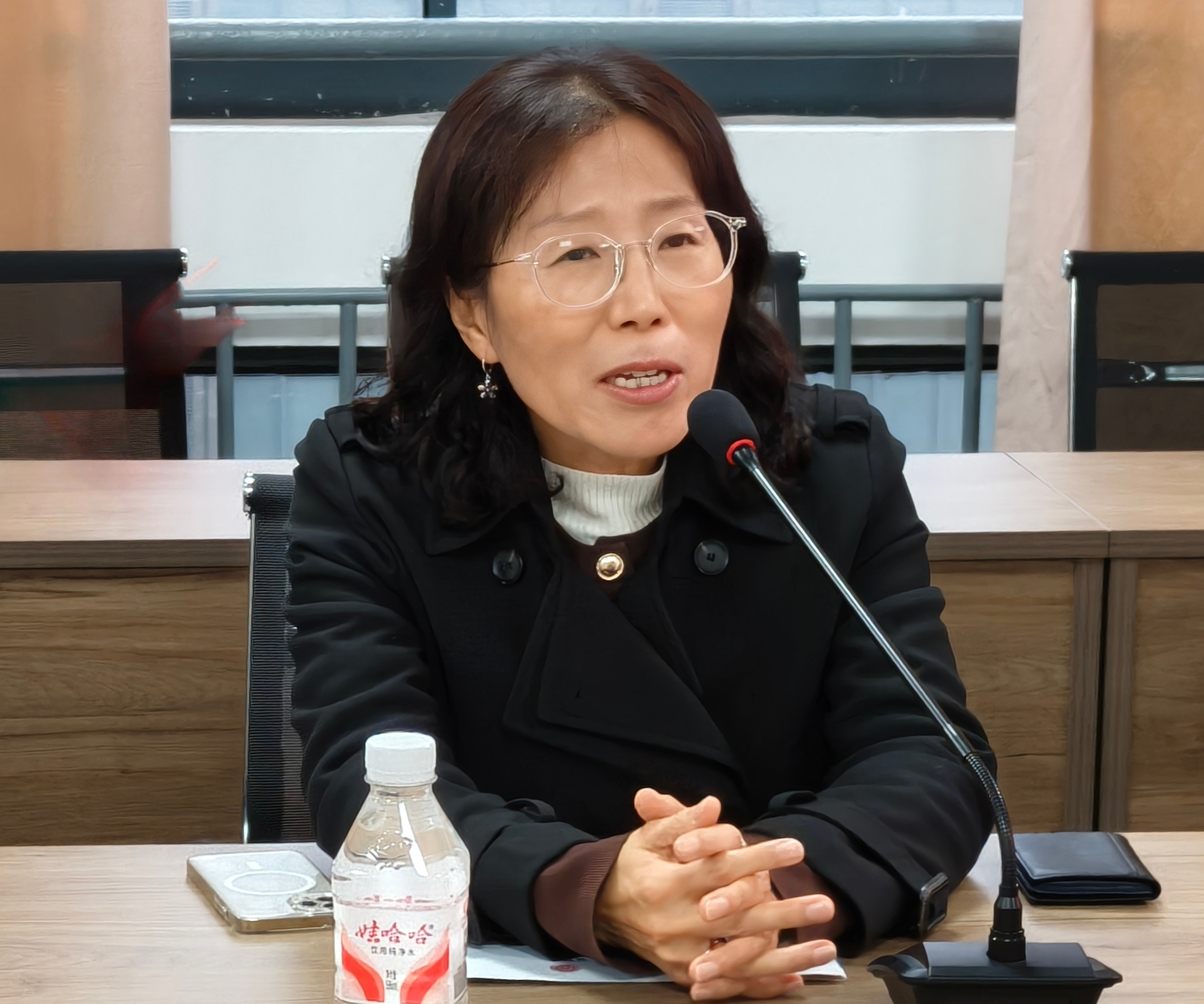 金贤淑首席代表对我校的热情接待表示感谢,介绍了韩国大邱广域市上海代表处的核心职能——主要致力于促进中韩两国在贸易、教育等多领域的深度交流与合作。她表示,此次牵头促成庆北大学代表团来访,希望推动两校充分沟通、精准对接,搭建起务实合作的桥梁,助力中韩交流走深走实。