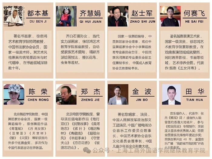 SICFL青少年国际文化艺术教育中心汇聚行业顶尖资源,特设大师顾问团,并邀请徐悲鸿艺术学院名誉院长徐小阳先生,徐悲鸿艺术学院特聘教授、著名书画家都本基先生,徐悲鸿艺术学院客座教授、当代实力派画家齐慧娟女士,徐悲鸿艺术学院兼职教授、著名越剧表演艺术家、国家一级演员何赛飞女士,国家一级舞蹈编导赵士军先生,北京舞蹈学院教授陈荣女士,北京电影学院教授郑杰先生,著名歌唱家金波先生,音乐唱作人田华先生等国内外艺术领域知名专家、国家一级艺术家担任顾问,定期开展大师亲授工作坊、专题指导等活动,让学员零距离感受艺术大师的专业魅力,汲取艺术精髓,树立高远的艺术追求。