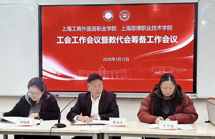 为做好两校“双代会”筹备工作,3月12日,上海工商外国语职业学院、上海思博职业技术学院工会工作会议暨“双代会”筹备工作会议在工商外四号楼1楼教工之家智慧教室召开。会议由思博学院工会常务副主席茅卉弦主持,两校工会委员、经审委委员、女工委委员及各分工会小组组长参加会议。