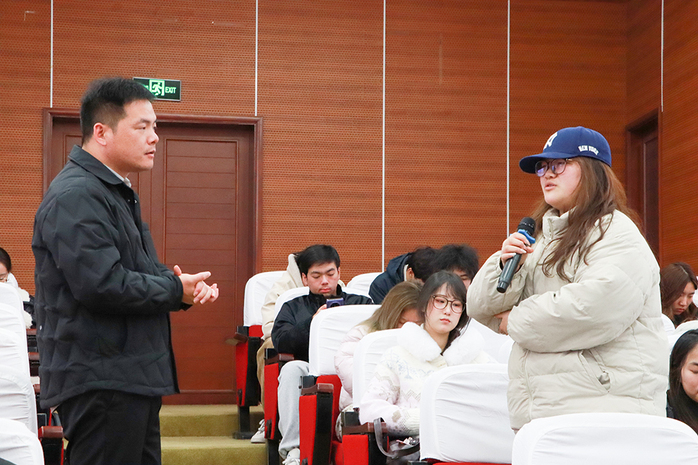 现场互动提问环节气氛热烈,同学们踊跃提问,将讲座内容与自身参赛项目相结合,提出诸多实际问题。针对学子们在备赛中遇到的困惑,蒋老师逐一细致指导引导大家精准聚焦项目痛点,理清核心逻辑,还现场演示传授向AI工具提出高质量问题的方法,帮助同学们获取更具价值的项目优化建议。这种贴合备赛实战的指导方式,让在场学子收获颇丰、受益匪浅。